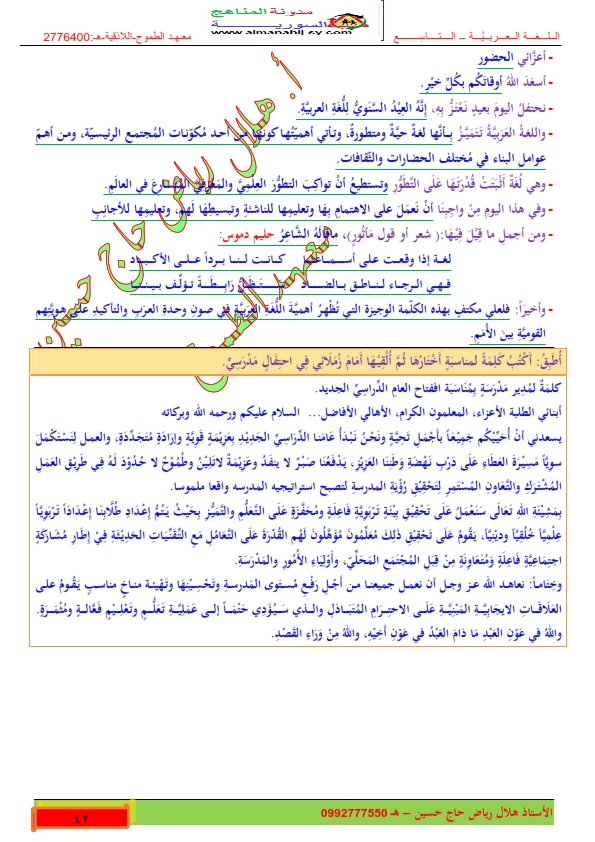 حل درس حلل الربيع في اللغة العربية للصف العاشر الفصل الدراسي الثاني منتديات صقر الجنوب