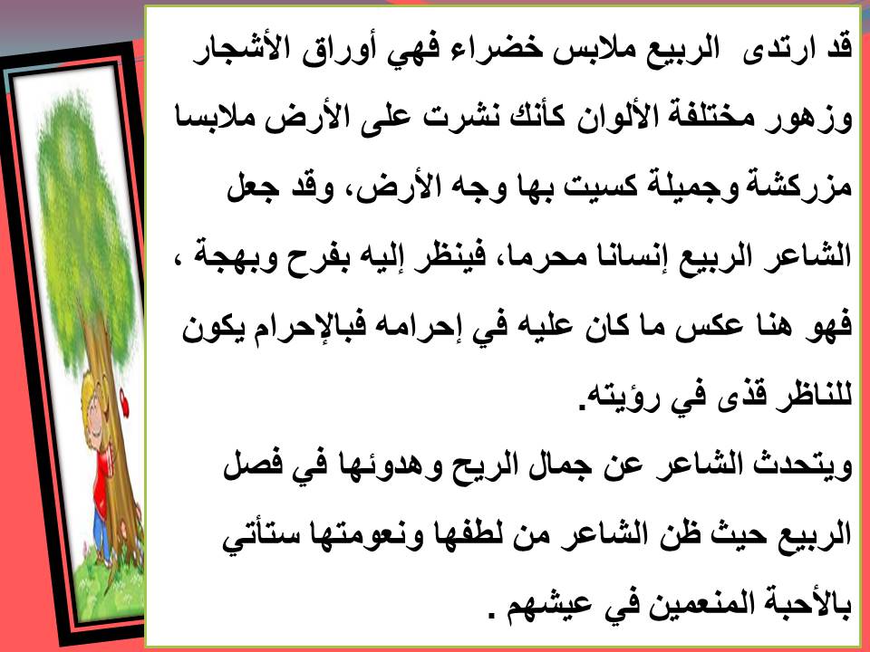 حل وشرح قصيدة الربيع للصف السابع الفصل الثاني جيل الغد