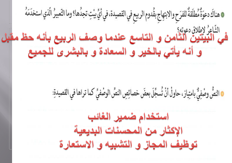 شرح درس وصف الربيع في اللغة العربية للصف التاسع الداعم الناجح