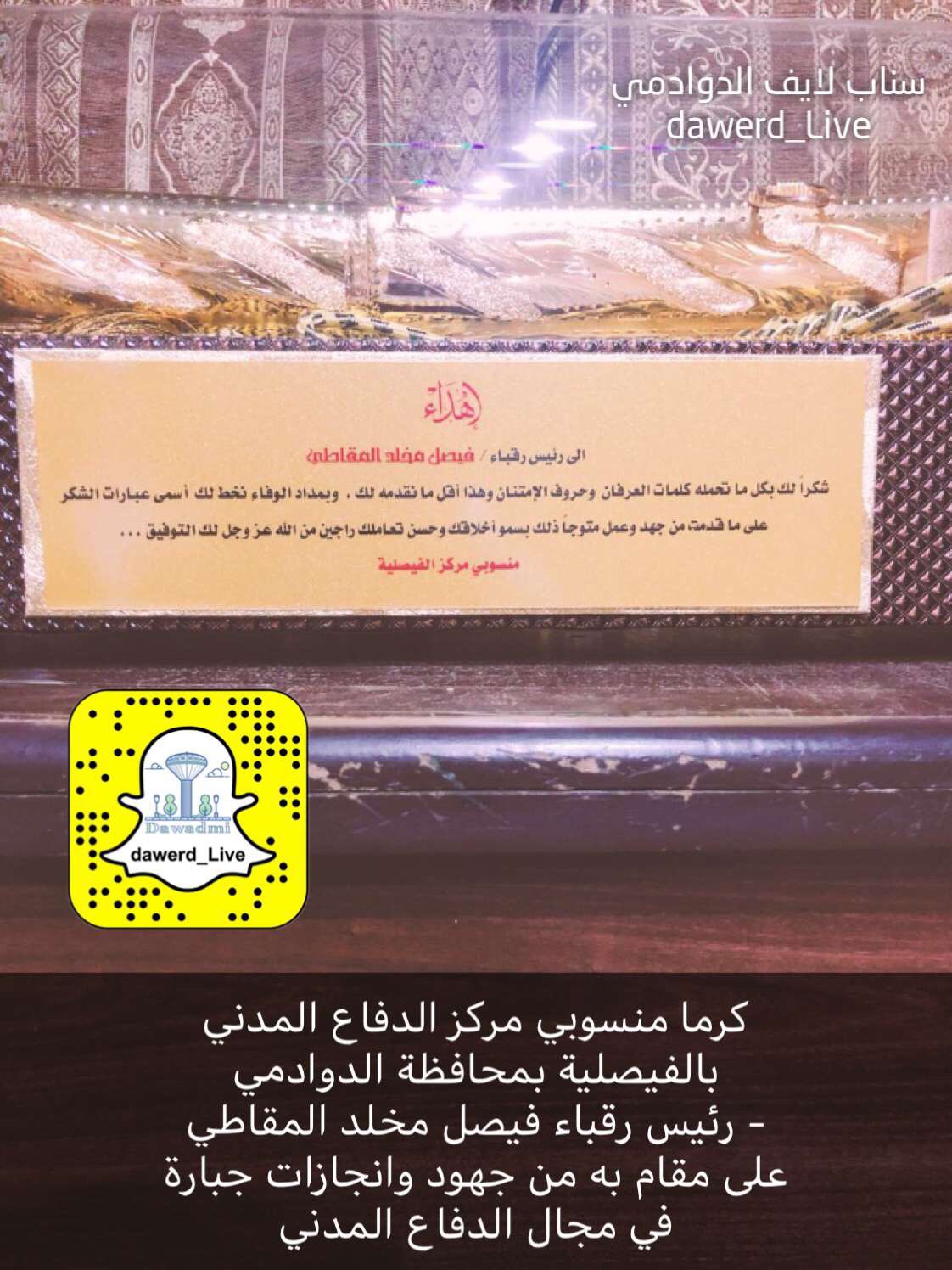 سناب لايف الدوادمي الرسمي On Twitter سناب لايف الدوادمي الرسمي Snap Dawerd Live كرما منسوبي مركز الدفاع المدني بالفيصلية بمحافظة الدوادمي رئيس رقباء فيصل مخلد المقاطي على مقام به من جهود وانجازات