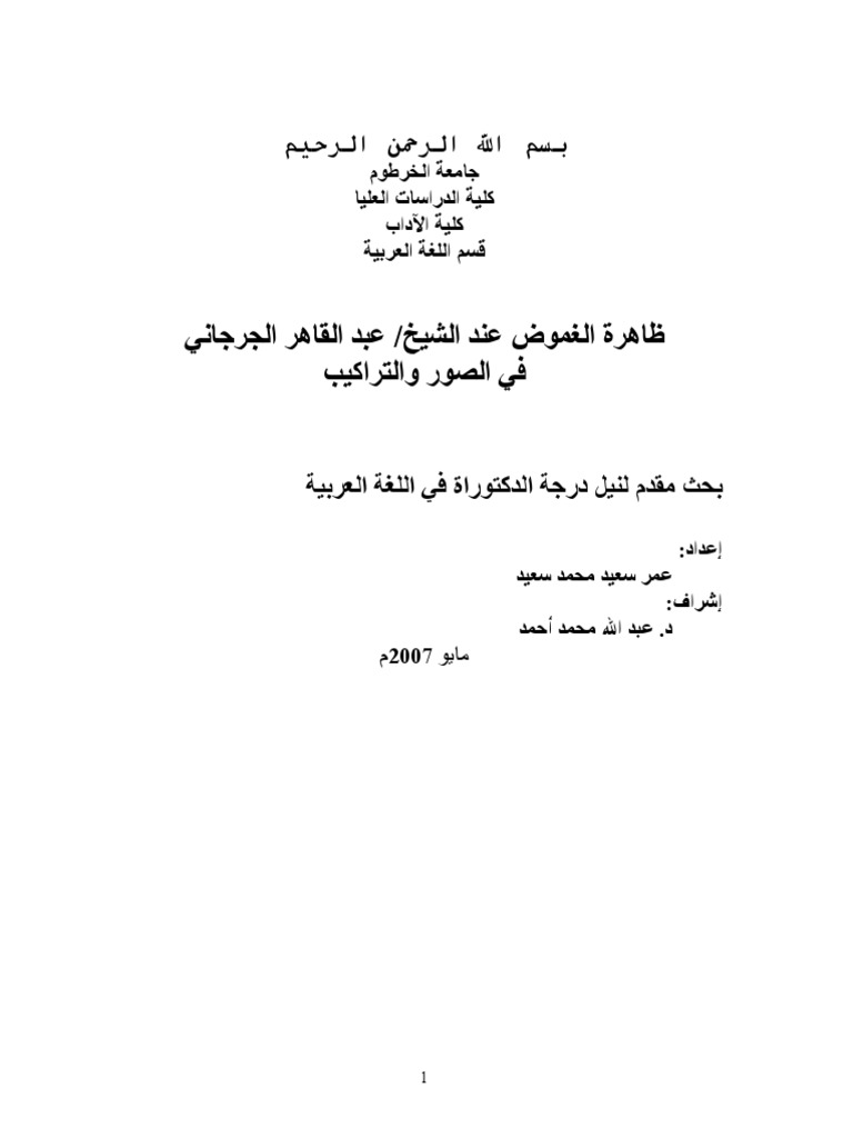 ظاهرة الغموض عند الشيخ عبد القاهر الجرجاني Pdf